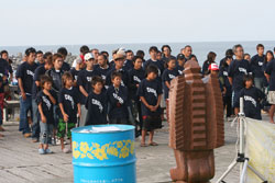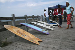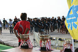 第11回茅ヶ崎市長杯争奪湘南祭『アマチュアサーフィンコンテスト』のエントリー受付と開会式が9/2(日)Tバーのボードウォークに設立された特設ステージで行われました。サーフィンコンテストの大会は波の状況により翌週の9/9(日)に延期になりました。集合は6:30でエントリー確認次第の7〜7:30頃からのスタートになります。大会模様および結果発表は、本ホームページでも掲載いたします。大会はあいにく延期となりましたが、湘南祭を締めくくるイベントとしてフラダンスやサーフィンショップのデモ店やビーチクリーンなど、茅ヶ崎らしい最後の夏に海岸は賑わいました。 (CSIU広報取材)