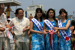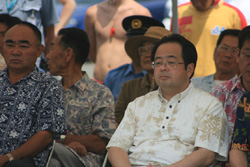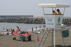 各来賓も大勢参列。ライフセーバーも気合い十分。監視台も早速この日から機能。