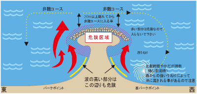 海流が複雑になっているため、サーフィンだけでなく注意が必要