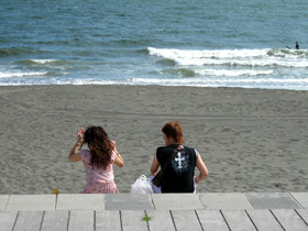 | 散歩、ジョギング…海に繰り出す人々。 |