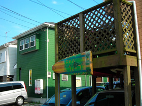 道路脇だろうとくつろげるウッドデッキが普通に設置。 |