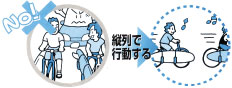並列で並ばず、必ず縦列で回りに注意して走行して下さい。